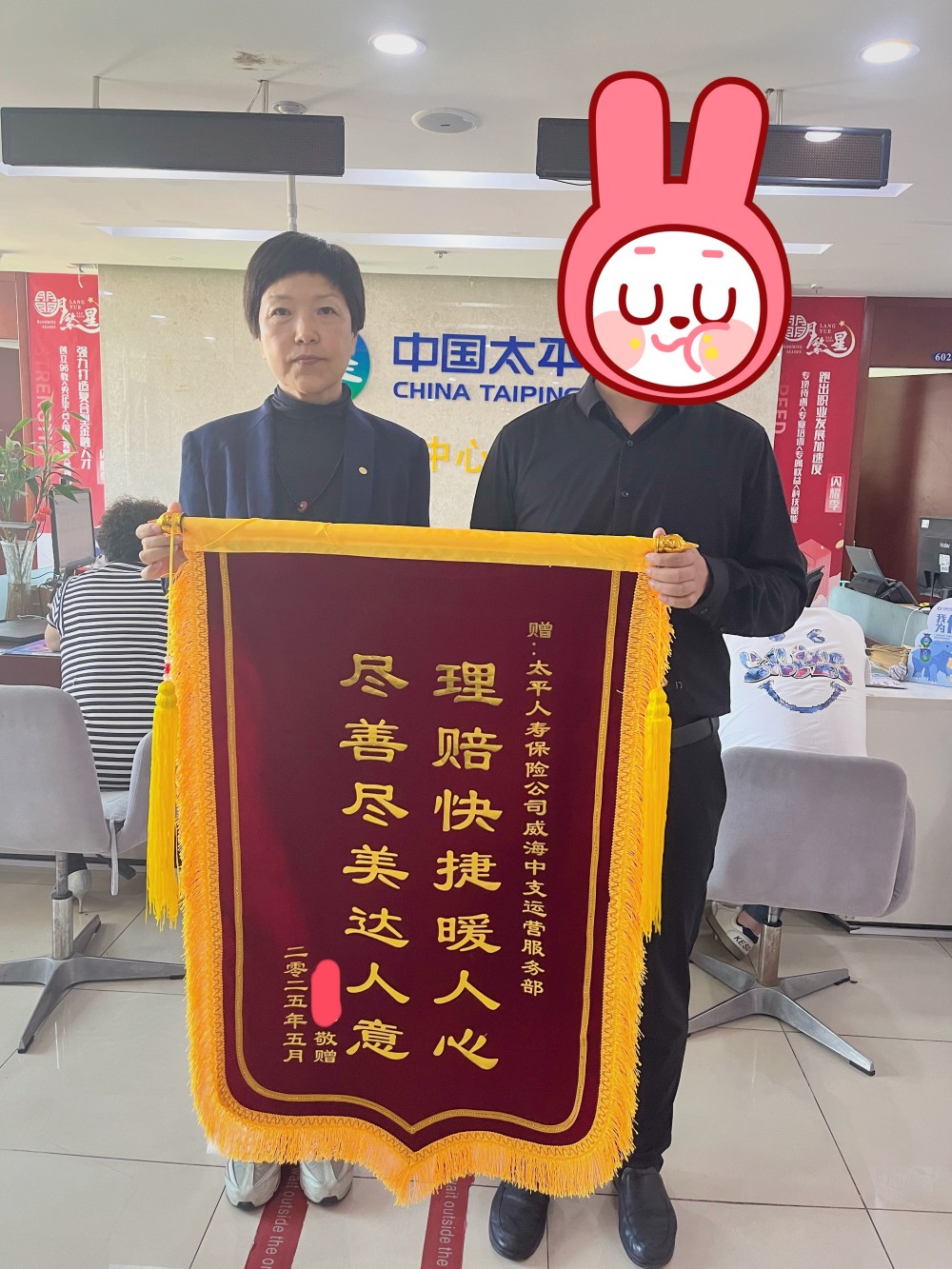 當(dāng)理賠款到賬后,S先生多次致電太平人壽客服,表達(dá)對理賠團(tuán)隊的感謝。更令人動容的是,他還親自將一面寫有“理賠快捷暖人心、盡善盡美達(dá)人意”的錦旗送到了威海中心支公司。