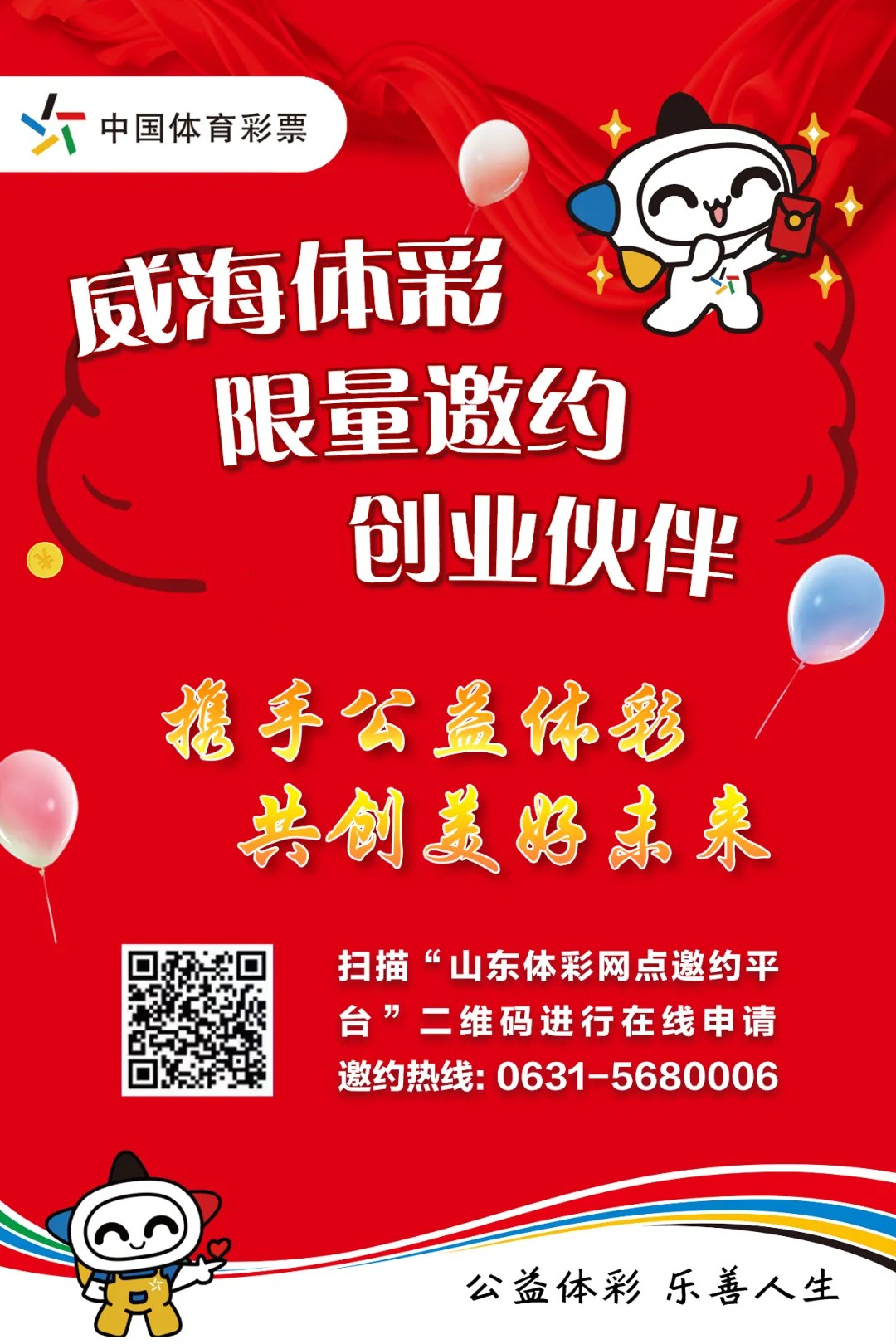 為實(shí)現(xiàn)中國(guó)體育彩票建設(shè)負(fù)責(zé)任、可信賴、高質(zhì)量發(fā)展的國(guó)家公益彩票發(fā)展目標(biāo),威海體彩現(xiàn)面向全市限量邀約優(yōu)秀創(chuàng)業(yè)伙伴,共享億元彩票市場(chǎng),歡迎來電咨詢或咨詢縣市區(qū)聯(lián)系人。