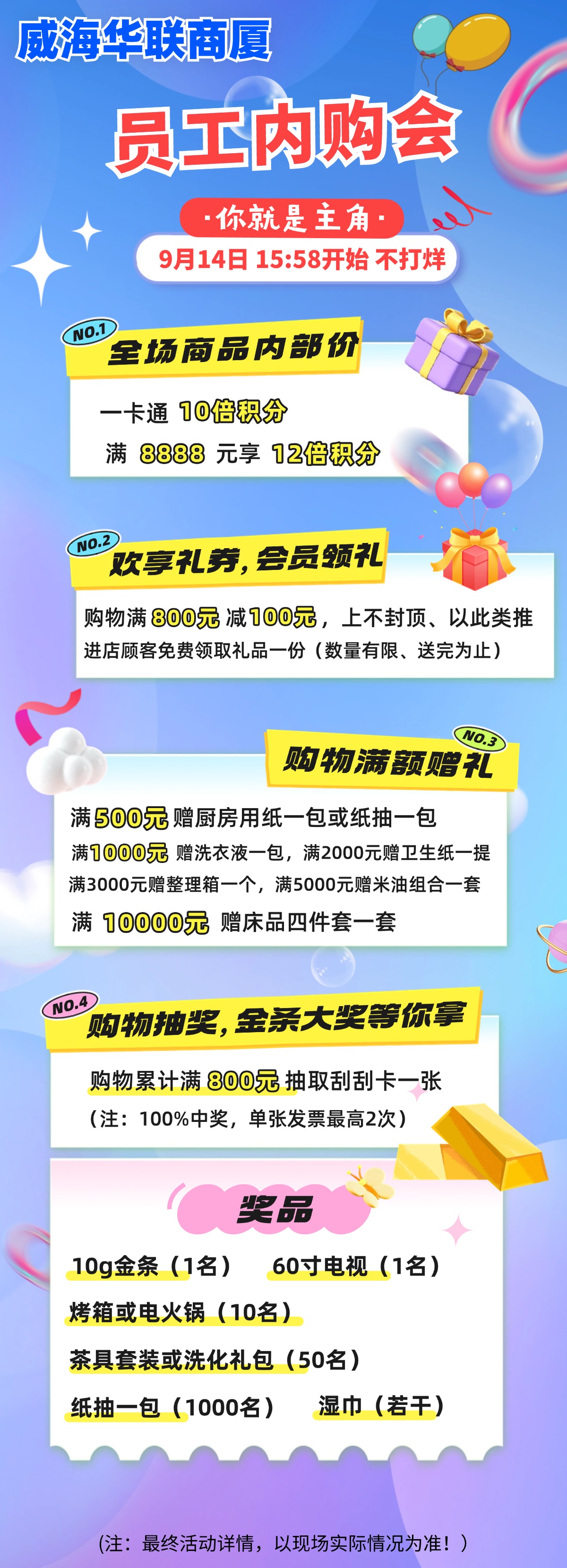 9月14日,威海華聯(lián)商廈員工內(nèi)購會