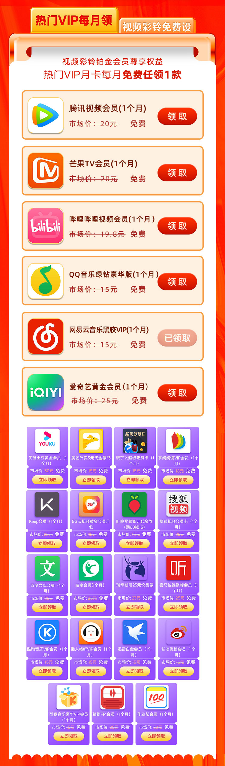 二十多款熱門APP,VIP會(huì)員,月月領(lǐng),月月?lián)Q!