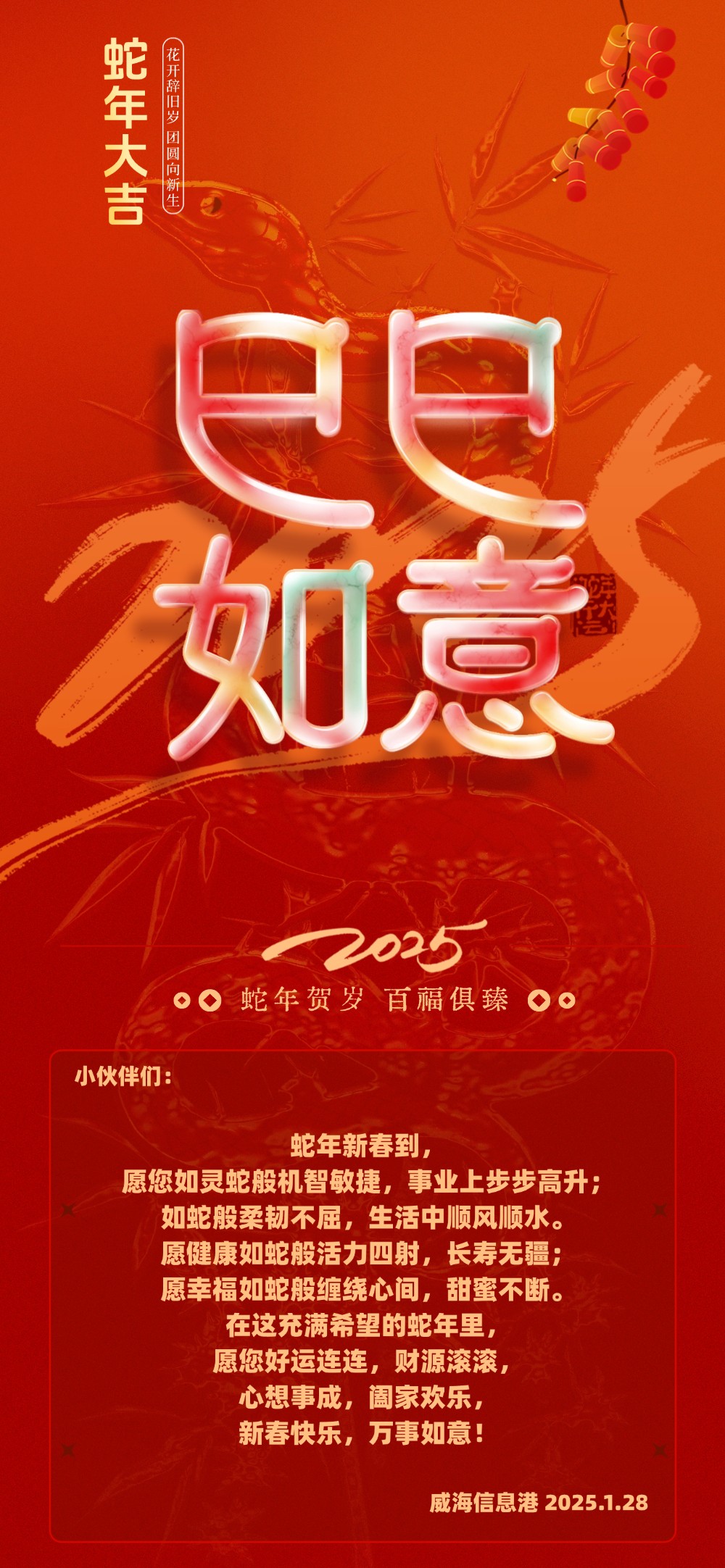 威海信息港祝大家蛇年大吉,萬事如意