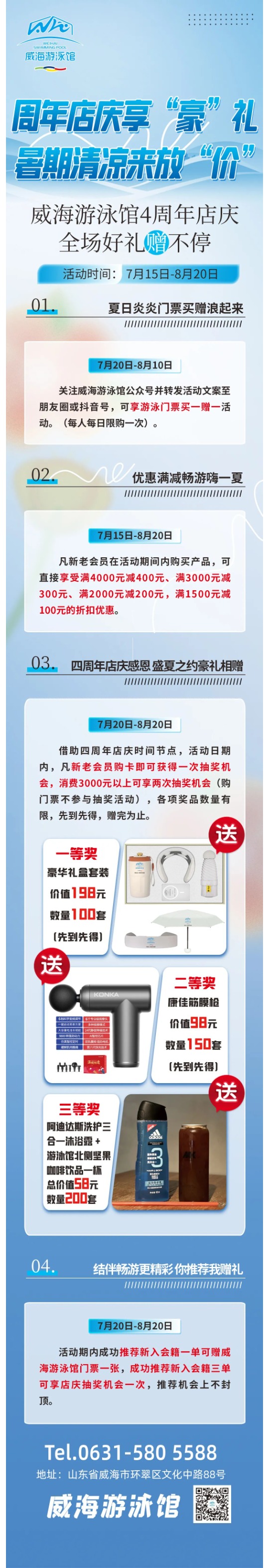 威海游泳館四周年店慶,全場折扣豪禮贈(zèng)不停!